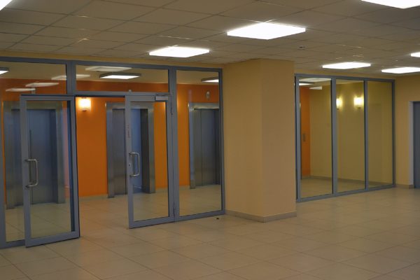 Противопожарные перегородки в коридор могут изготавливаться как в полностью остекленном варианте, так и в частично остекленном исполнении. Основное предназначение таких конструкций — это разделение общего помещения на несколько отдельных рабочих зон. При этом преследуется несколько целей: